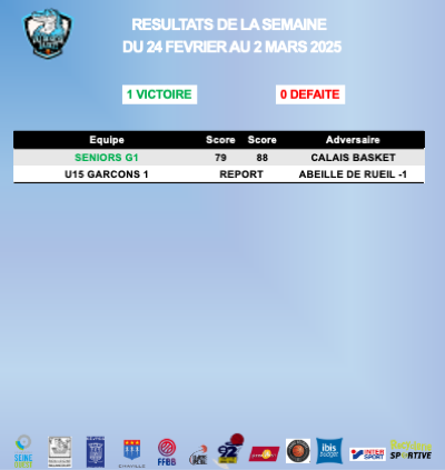 Résultats de la semaine du 24 février au 2 mars 2025