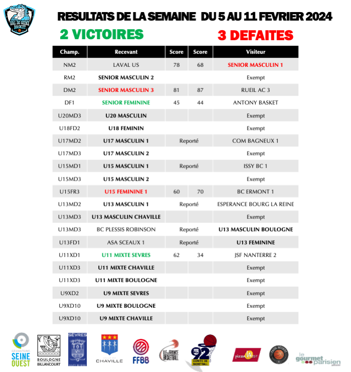 Résultats du week-end des 10 et 11 février 2024
