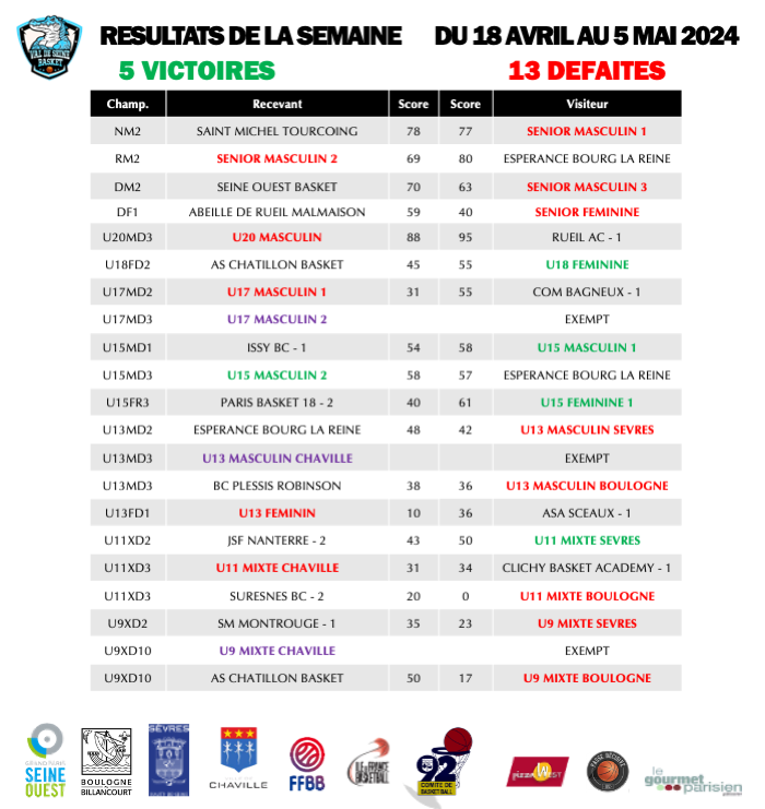 Résultats du week-end des 4 et 5 mai 2024